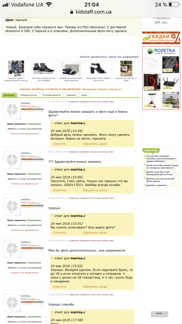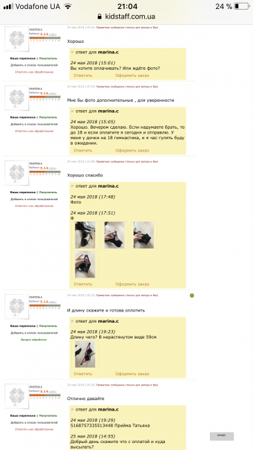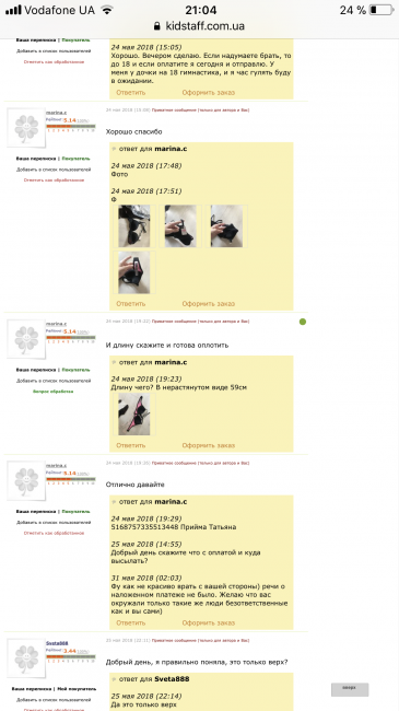 Девушка, ну вам же написали администраторы предупреждение! И удалили враньё ваше! А вы опять его пишите тут! Вы взяли реквизиты на оплату после того как я вам спокойно отвечала на вопросы, высылала доп фото. А потом вы просто пропали, я просто спросила покупаете вы товар или нет, ответа не последовало. А через время вы пишите враньё, которое было удалено. И вот вы снова пишите не правду! Фото переписки предоставляю ниже. Так же отзывы о вас в вашей гостевой книге (последнее фото) говорят сами за себя... ужас заключается столкнуться с таким лживым покупателем!