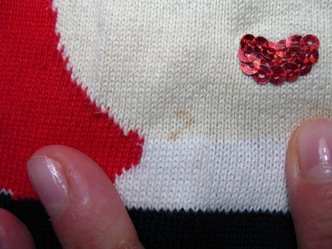 В результате приходит свитер с 7-10 очень заметными пятнами.