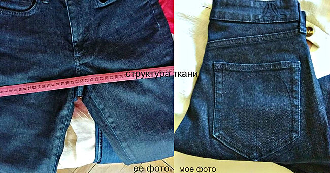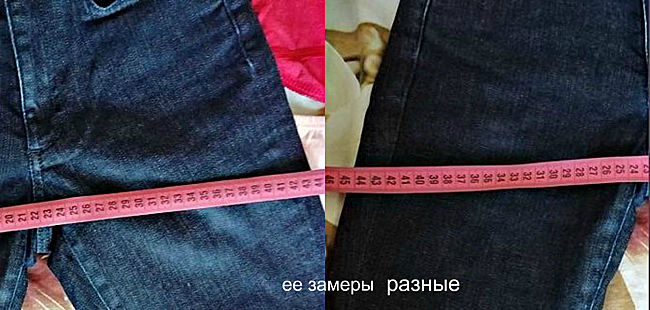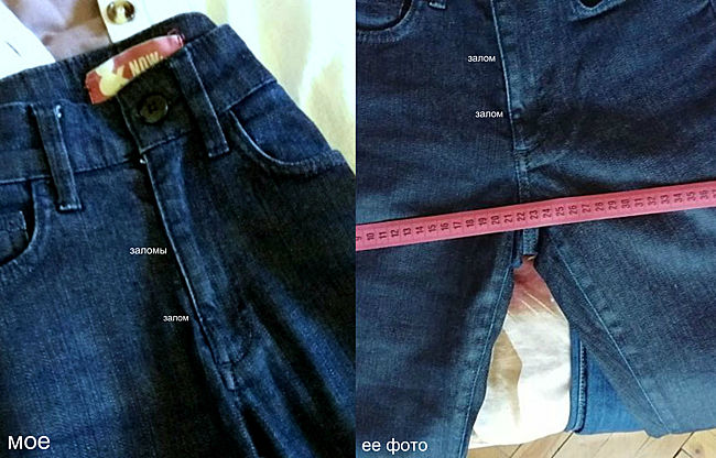 "другие джинсы"-доказательные фото вы отказались выложить как доказательную базу ,на советчице сказали "одни и те же" Замеры на ваших фото разные -манипуляция лентой ! посадка 26 см высокая , вы отказались сделать фото ее по причине что будет видна пуговица и фирма доказывающая,что товар выслан тот ,что в объявлении ! слово "врет "применимо к вам - ибо вы не доказали приложив фото что вещь другая ! вещи полученные в подарок собрались продавать -в теме на советчице облили грязью бездоказательно , все дефекты и изъяны показывают в фото - вы на отрез отказались разговаривать с продавцом ,внесли в ЧС - это не адекватное поведение с вашей стороны! фото прилагаю где же это другие джинсы? будущие продавцы -будьте осторожны с таким покупателем который считает себя" правой" без доказательной базы( фото) будите обвиненные со всех сторон покупателем! магазин просил доказательств -покупатель отказался их предоставить( фото бирок,лейбы, посадки,) судить вам ! за подарки приносим извинения,надеемся,что вы продадите их по выгодной для себя цене!