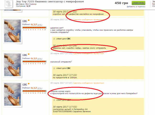 Девушка купила у меня обувь в нормальном состоянии.Поставила отзыв - удовлетвопительно!!!! После покупки ничего не написала в сообщениях.Туфельки хорошие, ессо за 260гривен.Ношены 1 сезон.НЕ ПОНИМАЮ, ЧЕМ ЗАСЛУЖИЛА ТАКОЙ ОТЗЫВ!!!!!!!!!!!!!! Очень НЕ ПРИЯТНО!!!!