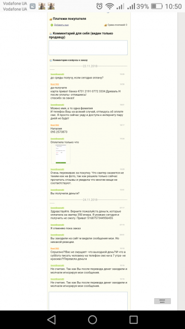Какой кошмар!!!Таким как Вы нужно блокировать аккаунт, и не просто аккаунт, а по айпи адресу, чтобы Вы никому не морочили голову, не выписывали гадости. Девочки!!!! Почитайте гостевую этой девушки. Станет все понятно!!!!Схема одна и та же. Заказывает, отменяет заказ, и дальше начинает лить грязь и негатив!!!Фу, неужели нечем заняться!!!! День человек получал консультацию, и ответы на все вопросы, вечером в 19-24 оплатила, утром написала, верните деньги. Мало того, что в выходной день в 7утра на телефон начала писать, не имея ни капли уважения, что выходной день, так и этого мало, ещё хватает совести теперь писать про качество вещей, про соответствие вещей!!!!!При том, что ничего не покупала, и при том, что пишет, что уезжает, и не сможет получить посылку. Сплошное вранье!!!! Прикрепляют скрины
