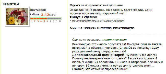 У меня за все время работы только один Ваш недовольный отзыв, Вы хоть бы посылку отследили, где она задержалась и по чьей вине... а потом негативили!!! Все настроение испортили после отпуска... :(