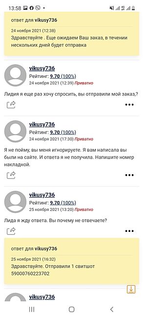 4. 24 числа вы спросили о статусе посылке , 24 Вам и ответили . Вопрос : почему вы пишите что вам не отвечали по 2 дня .