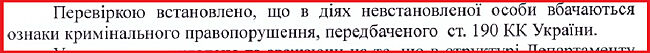 Ниже фрагмент оф. ответа от полиции (ст. 190 КК Украины).