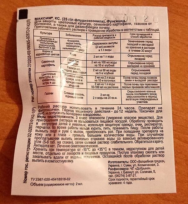 производитель Максим фунгицид, 2мл на упаковке указан как некое ООО в г. Сумы. хотя Максим это Сингента
