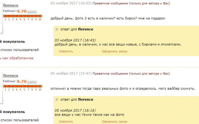 Хотела заказать у данного продавца вещь,но в первых двух фразах почувствовала нотку высокомерия и пренебрежения.