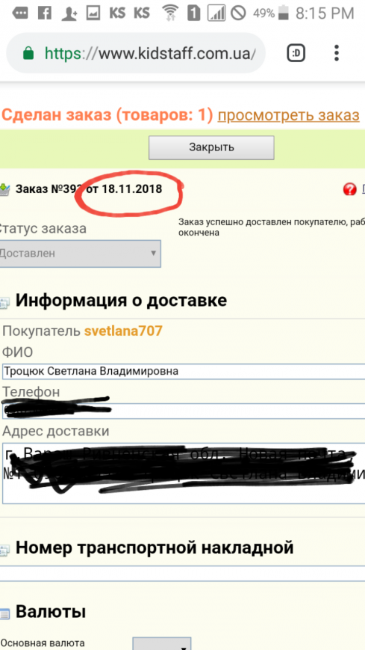 1. Как выслала не сразу? Оплата была 20.11 2018 в 18.00, а отправка на следующий день - 21.11 2018, чеки соответственно по отправке у меня есть. Или мне с 18.11 нужно было на НП ждать оплату, чтобы сразу Вам отправить?
